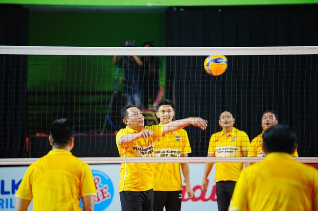 Kapolri Jenderal Listyo Sigit Prabowo meninjau Pertandingan Bola Voli Putra-Putri Putaran Kedua Zona Barat Kapolri Cup 2023. Pertandingan digelar di GOR Lapangan Bulungan, Kebayoran Baru, Jakarta Selatan (Jaksel).