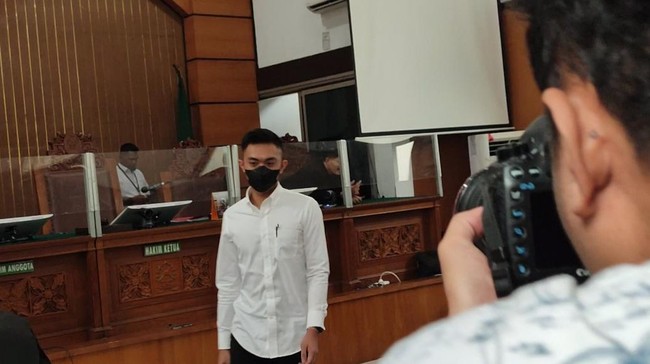 Mario Dandy kemudian melihat ke arah jaksa yang membacakan amar putusan. Mario Dandy yang mengenakan kemeja putih celana hitam itu lalu kembali melihat ke arah majelis hakim.