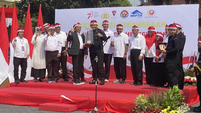 "Kisi-kisi pasti jelas, kita semua udah jelas ini Indonesia, menyanyikan Indonesia Raya, bicara Pancasila, bicara UUD 1945, bicara Padamu Negeri. Ini harus kita urai bersama-sama lagi, negara yang sangat luas sangat kaya pemahaman ini harus satu kata semua antara generasi muda-muda kita dengan teman kita lagi," jelasnya.
