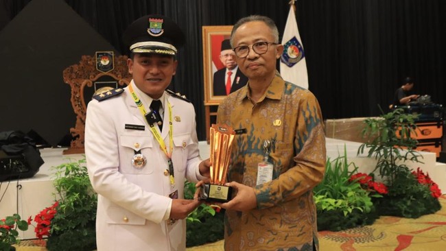 Piala penghargaan tersebut diserahkan Direktur Jenderal Bina Pemerintahan Desa Kemendagri, Eko Prasetyanto Purnomo kepada Lurah Cisauk Moch. Farly Gusriadi.