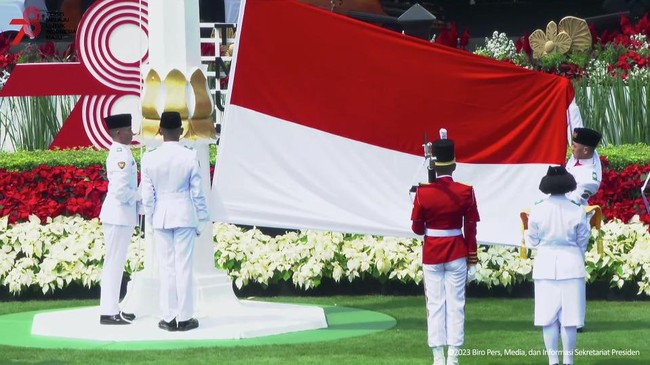 Prosesi pengibaran bendera dimulai. Suasana berlangsung khidmat. Sang Merah Putih berkibar dengan gagah di Istana Merdeka.