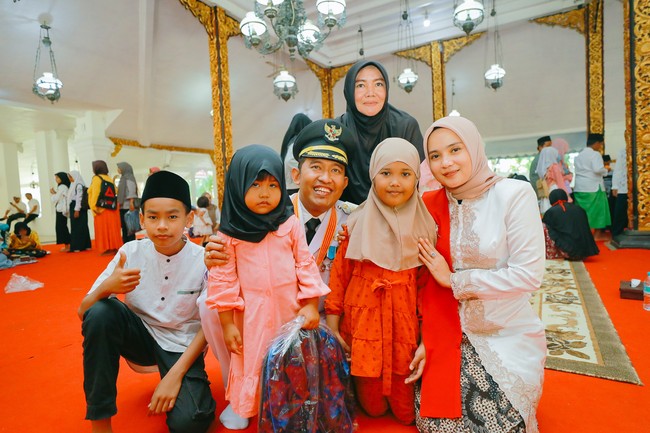 Usai berdoa bersama, Fauzi dan Nia menyempatkan duduk dan makan bersama anak-anak yatim yang dikumpulkan dari area Sumenep. Kegiatan ini menjadi salah satu cara Fauzi dalam merayakan HUT Kemerdekaan Indonesia ke-78.