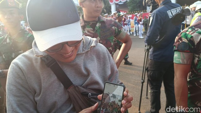 Dia mengaku sudah berniat hadir di barisan paling depan Istana Merdeka. Dengan begitu, ia bisa melihat lebih dekat Jokowi saat menyapa warga.