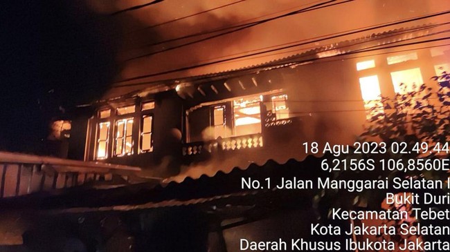 Dilihat dari akun Twitter Pemadam Kebakaran @humasjakfire, Jumat (18/8/2023) kebakaran itu dilaporkan terjadi tepatnya di Jalan Manggarai Selatan 1, RT 12 RW 01, Bukit Duri, Tebet, Jakarta Selatan.