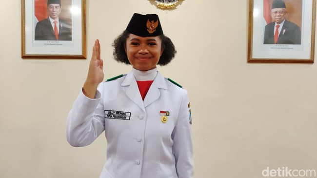 Paskibraka asal Papua Pegunungan, Lilly Indiani Suparman Wenda, mengaku tak panik saat sepatunya lepas sebelah kala upacara di Istana Merdeka kemarin. Lilly mengaku tetap fokus menjalankan tugasnya sebagai pembawa baki Bendera Merah Putih.