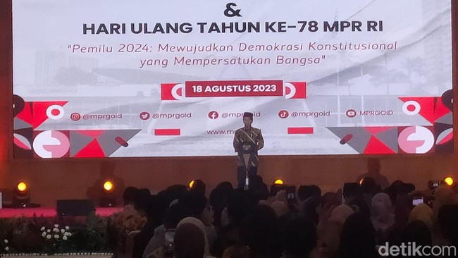Jokowi menyampaikan hal ini dalam peringatan Hari Konstitusi, yang digelar di kompleks parlemen, Senayan, Jakarta, Jumat (18/8/2023). Jokowi menyebut Indonesia harus bisa melihat apa yang dilakukan kompetitor.