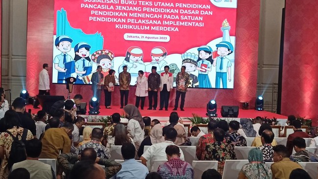"Jadi hari ini kita BPIP melaunching buku teks utama dari mata pelajaran pendidikan Pancasila yang berlaku untuk tingkat dasar dan menengah yang sebetulnya tadi bisa dipertimbangkan ke jenjang pendidikan formal maupun nonformal," kata Menteri Koordinator Bidang Pembangunan Manusia dan Kebudayaan Republik Indonesia, Muhadjir Effendy, di The Tribrata, Jakarta Selatan, Senin (21/8/2023).