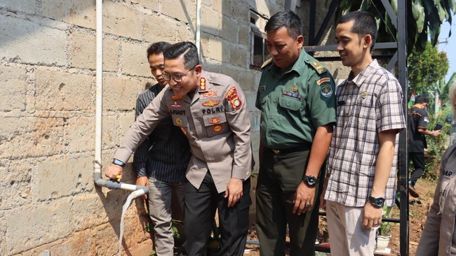 "Pemberian sumur bor dan pompa air sebanyak 2 buah, yaitu masing-masing sumur bor 1 buah dan pompa air 1 buah. Kita melaksanakan bantuan sumur bor dan pompa air untuk warga Kampung Bulak. Dalam rangka Polri Peduli Lingkungan," ujar Fuady dalam keterangannya, Selasa (22/8/2023).