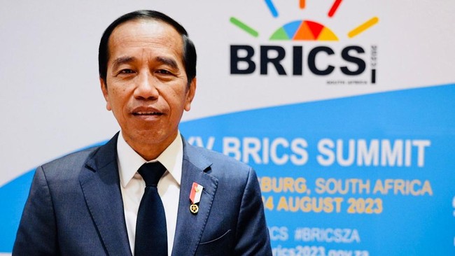 Jokowi mengatakan Indonesia akan mengkaji terlebih dahulu terkait kemungkinan bergabung dengan BRICS. Jokowi menegaskan Indonesia tidak ingin tergesa-gesa.