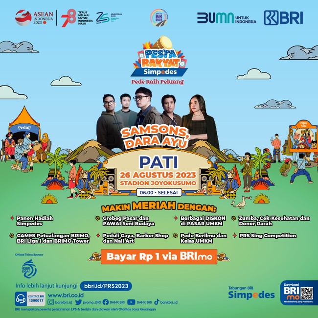 PT Bank Rakyat Indonesia (BRI) kembali mengadakan Pesta Rakyat Simpedes (PRS) 2023. Kali ini, PRS 2023 menyambagi Kota Pati, Jawa Tengah.