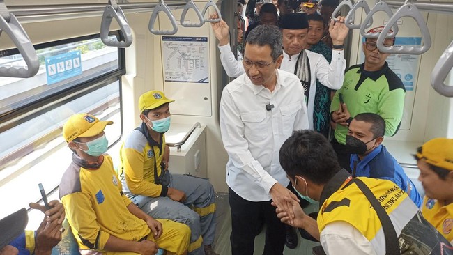 "Usulan Pak Hasan saran yang baik, cukup membantu kita. Siapa tahu, ban kita lagi bocor bisa naik LRT, he-he-he...," ucap Cahyo.