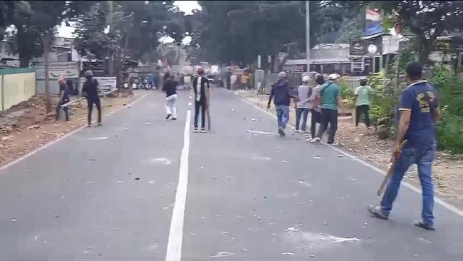 Dalam video viral yang dilihat detikcom, tampak sekelompok pria membawa alat pemukul meneriaki kelompok lawan yang ada di depannya. Sejumlah orang juga melemparkan batu ke arah lawan.