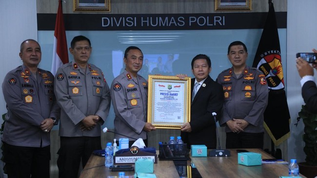 Divisi Humas Polri mendapat apresiasi dan penghargaan Presisi Award. Penghargaan diberikan kepada Kepala Divisi Humas Polri Irjen Sandi Nugroho.