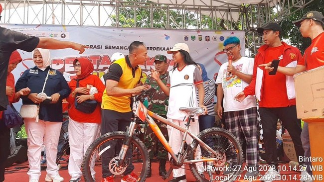Pesta Rakyat Bintaro ini digelar, Minggu (27/8/2023), sekaligus memperingati HUT ke-78 RI. Kegiatan yang dibuka oleh Wali Kota Jakarta Selatan Munjirin ini dihadiri Wadanramil, Camat Pesanggrahan, anggota DPRD hingga DPD DKI Jakarta.