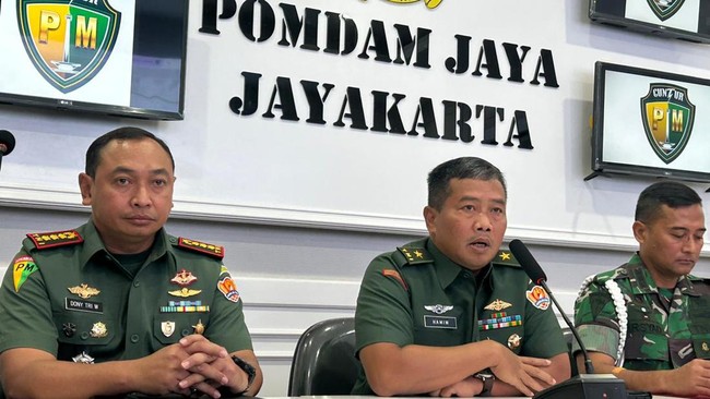 "Dan perlu saya sampaikan selain 3 oknum tersebut, ada juga tersangka dari sipil, warga sipil yang sekarang sudah dalam proses ditahan di Polda Metro Jaya," ujar Kepala Dinas Penerangan TNI Angkatan Darat (Kadispenad), Brigjen TNI Hamim Tohari dalam jumpa pers di Pomdam Jaya Jayakarta, Jakarta, Selasa (29/8/2023).