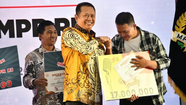 "Lomba stand up comedy MPR RI kali ini mengangkat tema 'Kebhinekaan Dalam Pesta Demokrasi'. Juara 1 dimenangkan oleh komika Suwarjo Wijaya yang berhak mendapatkan hadiah uang tunai sebesar Rp 17 juta. Juara 2 dimenangkan oleh M Ronaldo, mendapatkan hadiah Rp 13 juta. Juara 3 dimenangkan oleh Darwin Moa, mendapatkan hadiah Rp 10 juta, dan Juara Favorit diraih Awaludin dengan hadiah Rp 5 juta," ujar Bamsoet dalam keterangannya, Selasa (29/8/2023).