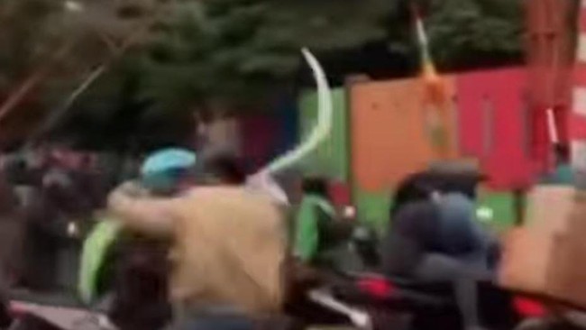 Dalam video yang ada, tampak beberapa pelajar terlihat menenteng celurit panjang. Beberapa orang lainnya tampak melempari lawan dengan petasan.
