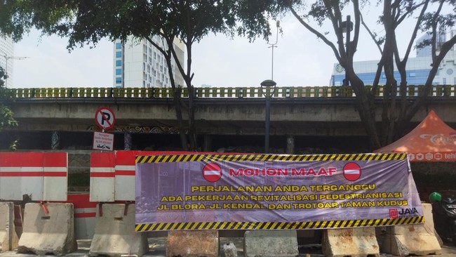 Pantauan detikcom di lokasi, Rabu (30/8/2023), pukul 12.00 WIB, tampak proyek pedestrianisasi itu dilakukan di ruas Jalan Blora dan Jalan Kendal yang berada di depan Stasiun KRL Sudirman. Ruas jalan tersebut tampak ditutup sementara untuk proses pengerjaan.