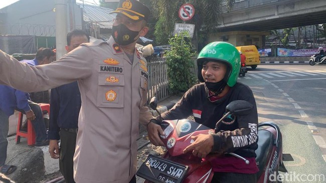 "Mau ke mana, Pak? Tahu ini bahaya nggak?" tanya Kompol David kepada pengendara motor.