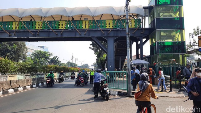 Beberapa pemotor lawan arah adalah ojek online. Mereka hendak menjemput penumpang di Stasiun Pasar Minggu.