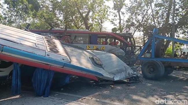 Dari keterangan yang diperoleh Yoyok, dua bus tersebut diduga menghindari pejalan kaki. Nahas, aksi tersebut membuat kedua bus justru bertabrakan hingga ringsek. Yoyok menyebut, Bus Eka dari arah utara atau dari Solo ke Surabaya. Sementara Bus Sugeng Rahayu dari arah Surabaya ke Solo.