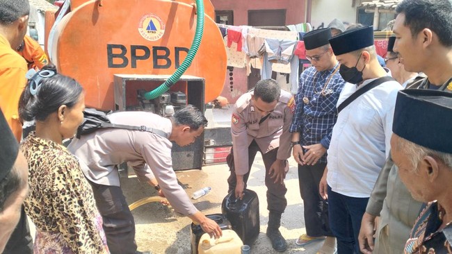 Polresta Serang Kota bersama BPBD Kota Serang mengirimkan 5.000 liter air bersih ke warga di Kampung Suci, Kelurahan Terumbu, Kecamatan Kasemen. Pengiriman dilakukan setelah dicurhati warga yang mengalami kekeringan imbas El Nino.