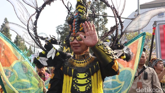 Dilansir detikJabar, Minggu (3/9/2023), iring-iringan peserta karnaval memenuhi jalanan mulai dari Monumen Perjuangan hingga Gedung Sate, Kota Bandung. Ridwan Kamil tampak mengenakan kostum capung.