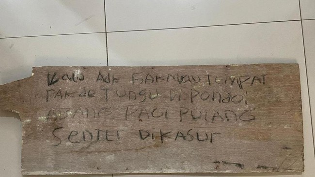 Dilansir detikSumbagsel, Minggu (3/9/2023), pesan itu ditulis Angga dengan tujuan hendak menguatkan anggapan bahwa Sindy sempat bertemu dengan seorang pria sebelum meninggal. Pesan itu ditulis di atas tripleks diduga menggunakan arang.