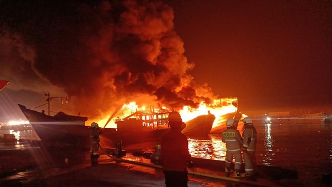Belum terinformasi berapa jumlah kapal yang terbakar. Api masih dalam proses pemadaman.