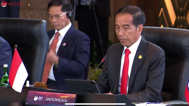 "Selamat datang di Jakarta pada acara KTT ke-43 ASEAN. Saya dan seluruh rakyat Indonesia sangat senang menyambut kehadiran keluarga besar ASEAN. Saya yakin tidak hanya Indonesia tapi seluruh negara anggota ASEAN memiliki rasa kebanggaan yang sama, memiliki rasa kecintaan yang sama terhadap keluarga yang kita beri nama ASEAN," tutur Jokowi saat membuka KTT ASEAN di JCC Senayan, Jakarta, Selasa (5/9/2023).
