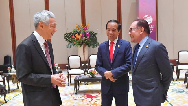 Jokowi, Anwar Ibrahim, dan Lee tampak tertawa bersama. Momen akrab itu terjadi menjelang KTT ASEAN dimulai.