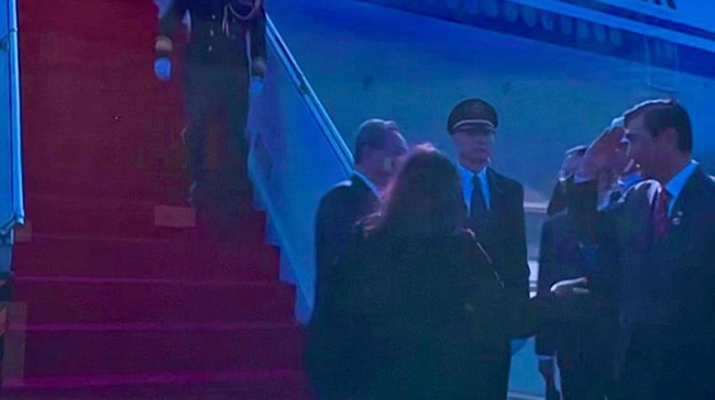 Li Qiang tampak disambut Luhut Binsar Pandjaitan saat turun dari pesawat. Luhut tampak memberi hormat kepada Li Qiang.