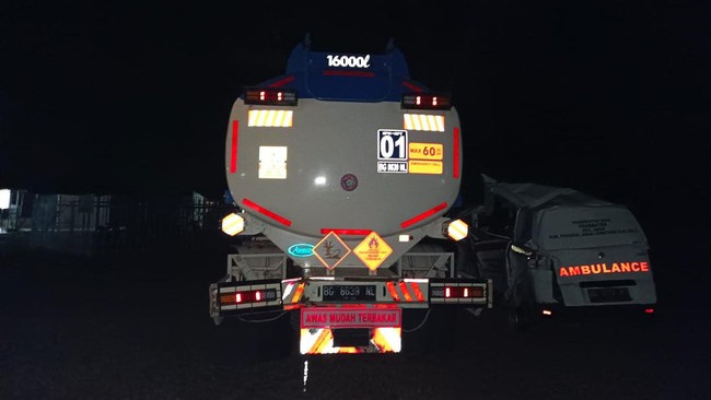 Kemudian, lanjut Andi, dari arah berlawanan, sekitar pukul 19.00 WIB tiba-tiba muncul truk tangki BBM warna biru tengah menyalip kendaraan yang berada di depannya, dengan mengambil jalur dari arah berlawanan. Lantas terjadinya kecelakaan.