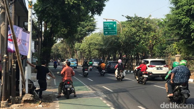 Di jalan ini, juga terdapat jalur sepeda. Lajur ini tampak sepi karena jarang pesepeda yang melintas.