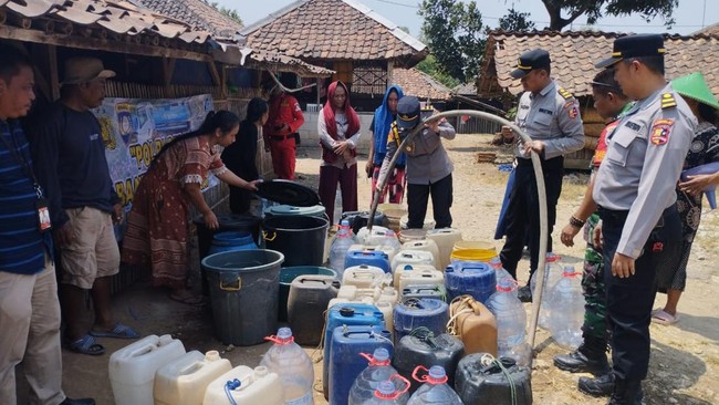 "Pembagian air bersih sebanyak 8.000 liter kepada warga yang mengalami kekeringan akibat musim kemarau," kata Kapolsek Cikarang Pusat AKP Untung Riswaji dalam keterangannya, Kamis (7/9/2023).