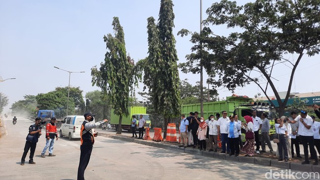 Beberapa petugas Dinas Perhubungan DKI Jakarta tampak masih berjaga di lokasi. Mereka mengarahkan pengendara agar tidak lagi melewati jalan sebelah utara.