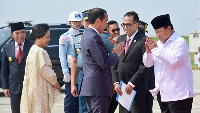 Tampak melepas keberangkatan Jokowi adalah Menteri Pertahanan Prabowo Subianto, Menteri Perhubungan Budi Karya Sumadi, Kapolri Jenderal Listyo Sigit Prabowo, Panglima TNI Laksamana Yudo Margono, dan Pj Gubernur Banten Al Muktabar.