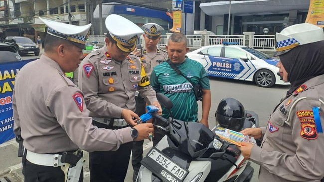 "Dalam pelaksanaan Operasi Zebra 2023 hari kelima, Satlantas Polresta Bogor Kota membagikan kunci setang ganda pada masyarakat," kata Kasat Lantas Polresta Bogor Kota Kompol Galih Apria, kepada wartawan, Jumat (8/9/2023).
