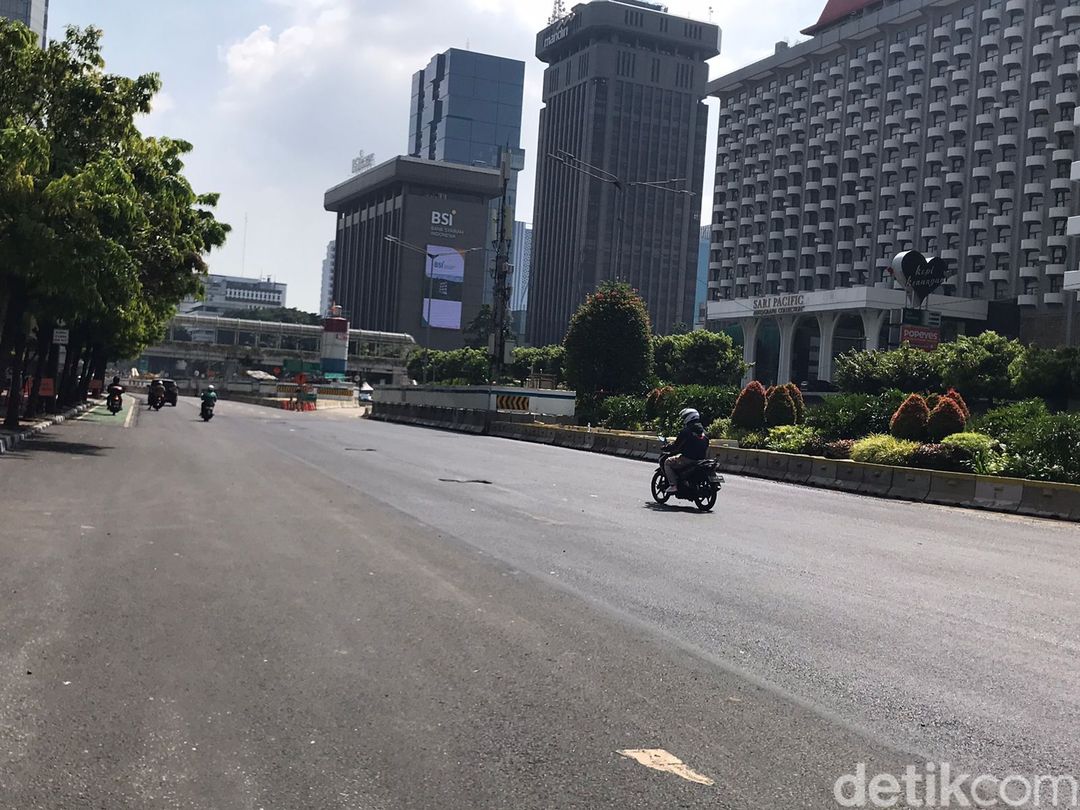Jl MH Thamrin, lapisan aspalnya baru saja dibangun baru. 5 Mei 2023. (Firda Cynthia Anggrainy/detikcom) |