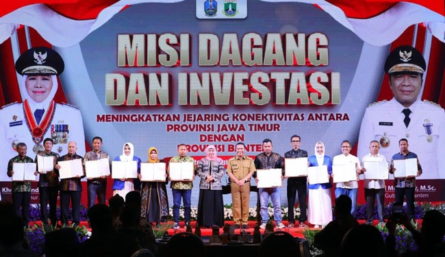 Gubernur Jawa Timur Khofifah Indar Parawansa memimpin Misi Dagang dan Investasi antara Provinsi Jatim dan Banten di Aston Serang Hotel & Convention Centre, Serang, Banten. Dia menyebutkan misi dagang kali ini mencatatkan transaksi sebesar Rp 340,477 miliar dengan rincian Jatim menjual sebesar Rp 312,017 miliar, dan membeli sebesar Rp 28,4 miliar.