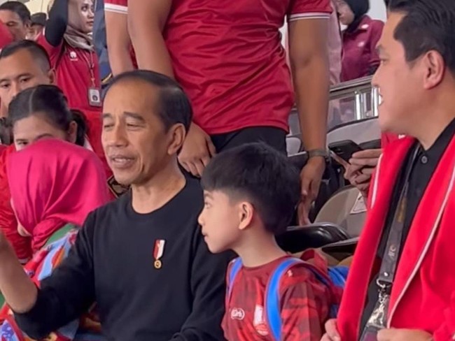 Momen Jokowi nonton bareng Jan Ethes itu terlihat dari unggahan Instagram Story Menteri BUMN, Erick Thohir. Dalam unggahan itu, tampak Jokowi mengenakan baju hitam dan Jan Ethes berbaju merah.