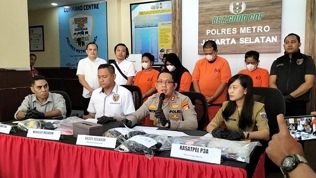 "Para pelaku dijerat dengan Pasal 27 ayat 1 Jo Pasal 45 ayat 1 UU No 19 Tahun 2016 tentang Perubahan UU No 11 Tahun 2008 tentang ITE, Pasal 29 Jo Pasal 4 ayat 1, Pasal 30 Jo Pasal 4 ayat 2 UU No 44 Tahun 2008 tentang Pornografi dan/atau Pasal 296 KUHP dan/atau Pasal 506 KUHP," kata Kasat Reskrim Polres Metro Jakarta Selatan AKBP Bintoro kepada wartawan di Mapolres Jakarta Selatan, Selasa (12/9/2023).