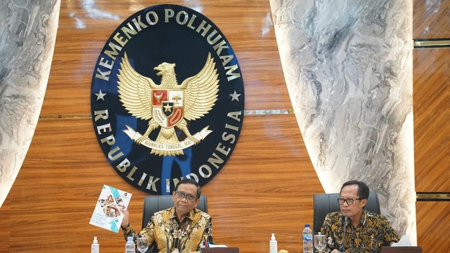 Sebelum menyerahkan rekomendasi ke Jokowi, Mahfud bersama Tim Percepatan Reformasi Hukum melakukan koordinasi terakhir di Kemenko Polhukam, Selasa (12/9/2023). Para anggota dan masing-masing Ketua Pokja, sebagian hadir fisik, selebihnya hadir secara daring karena sedang berada di luar kota.