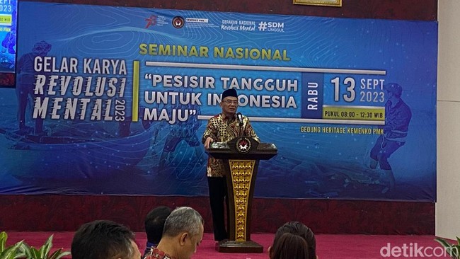 Menko PMK Muhadjir Effendy membuka seminar nasional bertajuk 'Pesisir Maju Untuk Indonesia Tangguh'. Eks Menteri Kelautan dan Perikanan RI Susi Pudjiastuti hadir dalam acara itu.