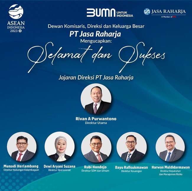 Menteri BUMN Erick Thohir dan Indonesia Financial Group (IFG) selaku pemegang saham, melakukan perubahan susunan Dewan Direksi Jasa Raharja, menyusul berakhirnya masa jabatan Direktur Manajemen Risiko dan Teknologi Informasi Jasa Raharja, Amos Sampetoding. Posisi Amos, digantikan oleh Harwan Muldidarmawan, yang sebelumnya menjabat sebagai Corporate Secretary Jasa Raharja.