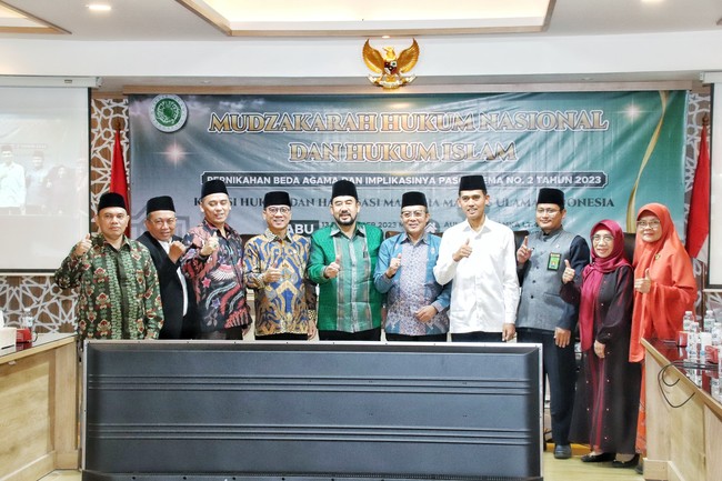 Perwakilan ormas Islam, seperti NU, Muhammadiyah, Persis, Hidayatullah, ICMI, serta dari berbagai pondok pesantren menghadiri 'Muzakarah Hukum Nasional dan Hukum Islam' yang bertema 'Pernikahan Beda Agama dan Implikasinya Pasca Surat Edaran (SEMA) No.2 Tahun 2023' di Aula Buya Hamka, Jakarta.