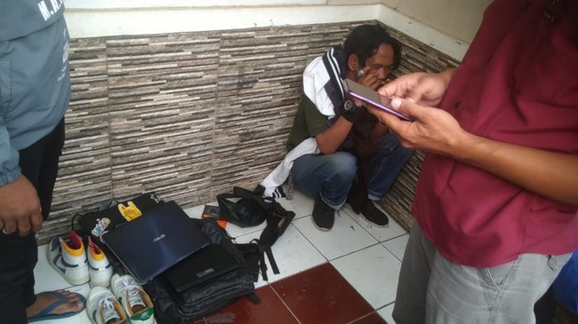 Warga menggeledah tas pria tersebut. Saat digeledah ternyata terdapat ponsel hingga laptop yang diduga hasil pencurian.