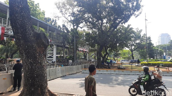 Jalan Medan Merdeka Selatan masih bisa dilalui pengendara. Kendaraan bermotor dialihkan ke jalan tersebut dan arah Bundaran HI.