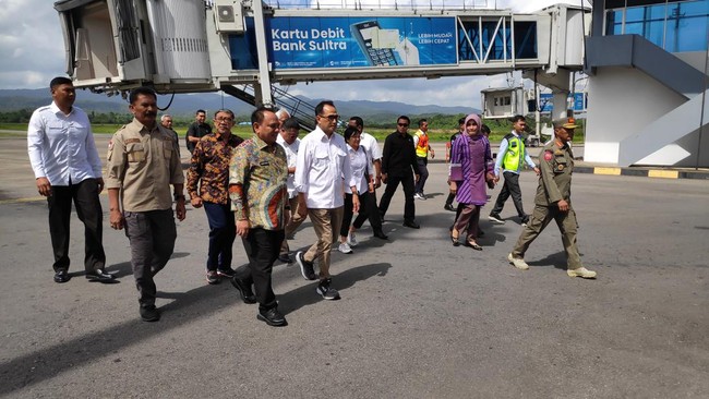 Pantauan detikcom, Budi Karya tiba di Bandara Halu Oleo, Kendari, Sulawesi Tenggara, Jumat (15/9/2023), sekitar pukul 09.45 WITA. Budi Karya disambut Pj Gubernur Sulawesi Tenggara Andap Budhi Revianto.