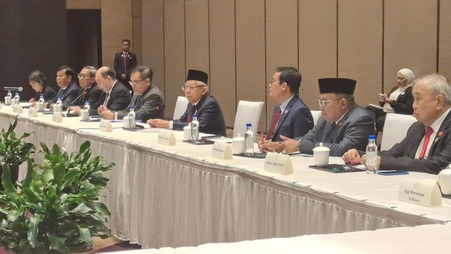 Pertemuan itu berlangsung di Hotel Crowne Plaza Fuzhou Riverside, Fuchou, Provinsi Fujian, China, Jumat (15/9/2023). Ma'ruf awalnya mengapresiasi sejumlah proyek kerja sama pengusaha China dan Indonesia di RI.